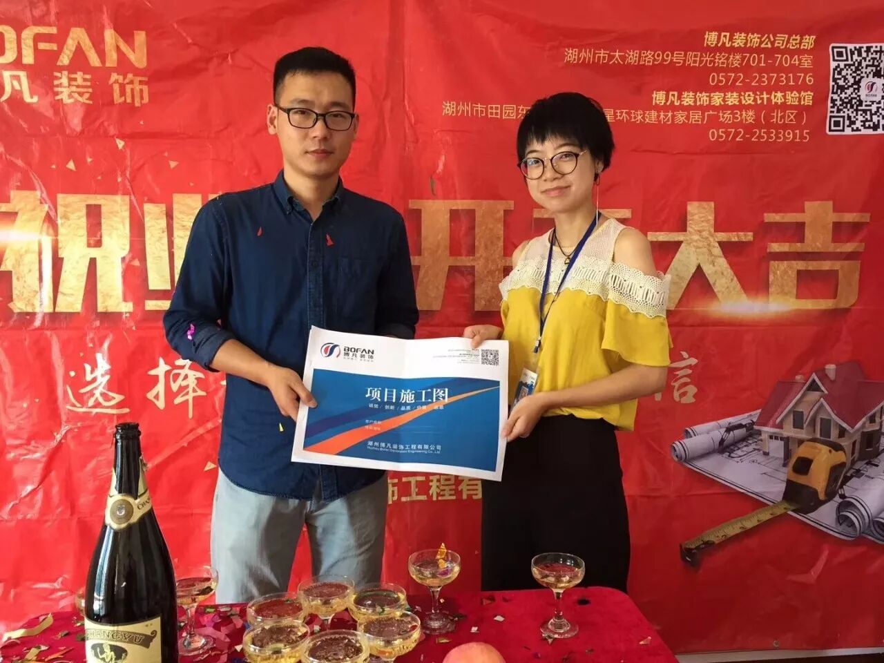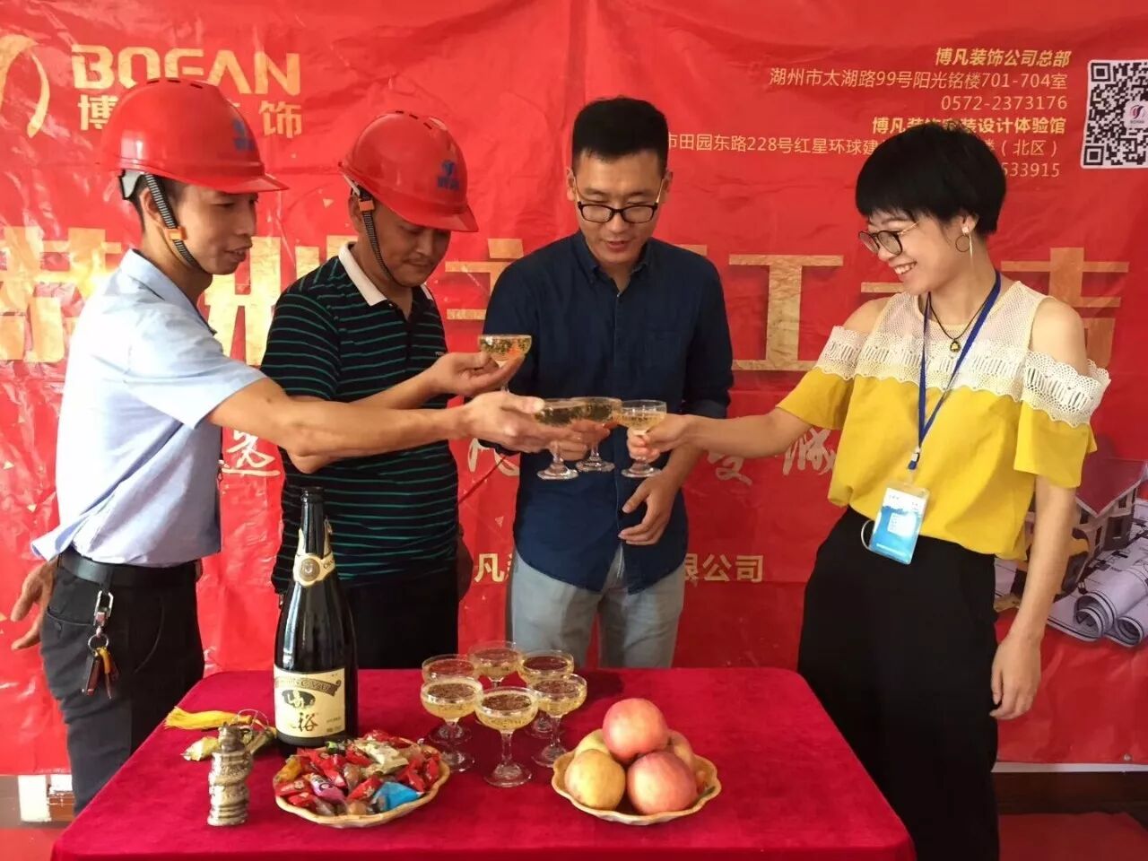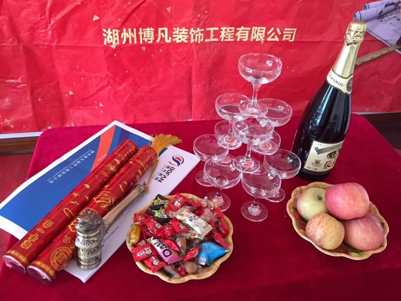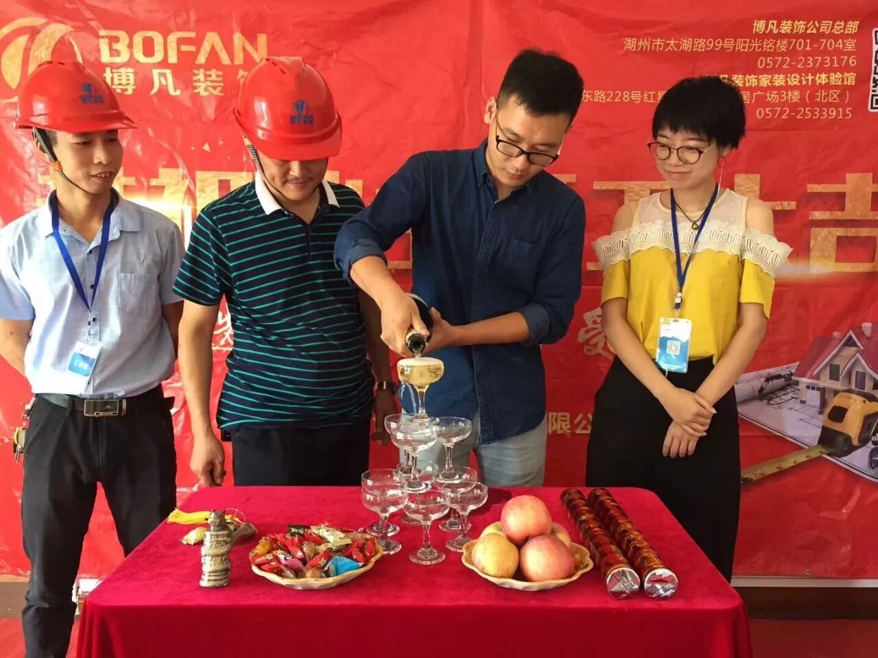 仪式现场,喜庆的礼炮、醒目的开工条幅、香槟美酒,每一处细节都体现出博凡装饰对客户的周到与贴心,也更多的体现出博凡装饰对客户高度负责的服务意识和品牌理念。