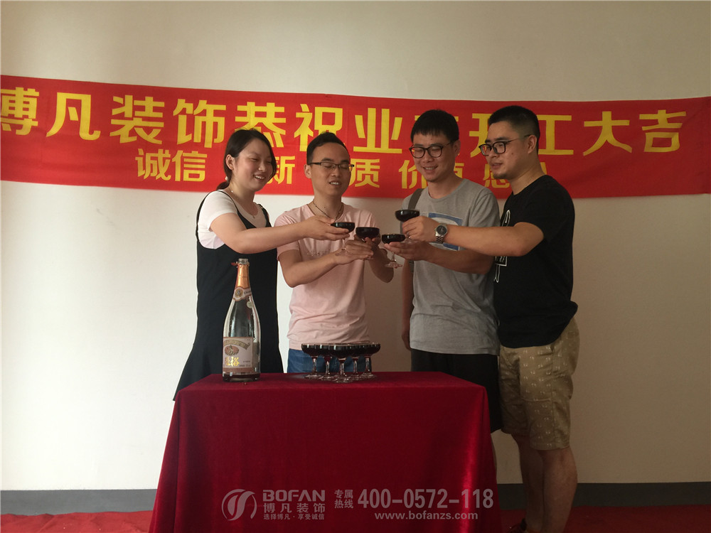 仪式现场,喜庆的礼炮、醒目的开工条幅、香槟美酒,每一处细节都体现出博凡装饰对客户的周到与贴心,也更多的体现出博凡装饰对客户高度负责的服务意识和品牌理念。