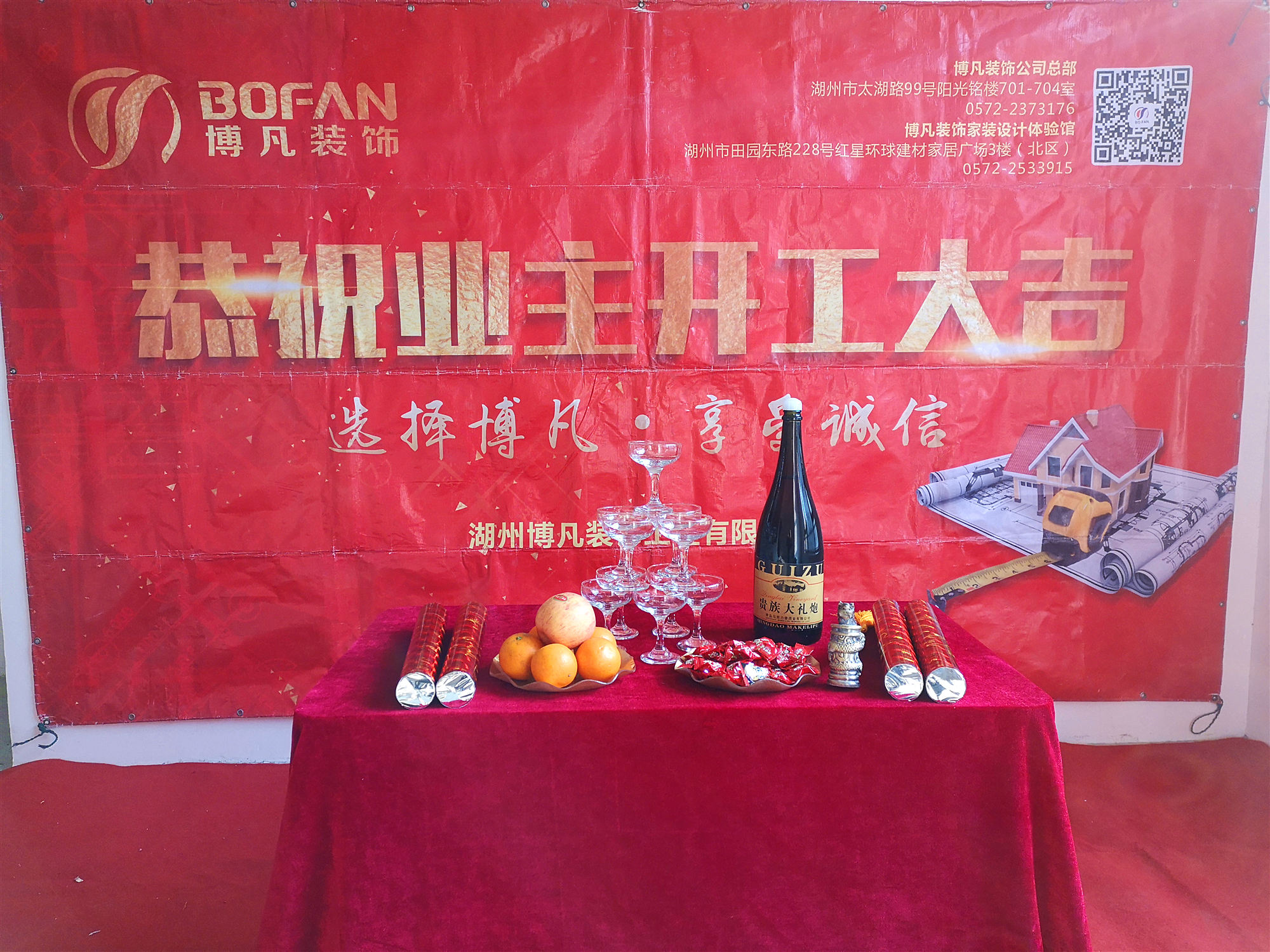 仪式现场,喜庆的礼炮、醒目的开工条幅、香槟美酒,每一处细节都体现出博凡装饰对客户的周到与贴心,也更多的体现出博凡装饰对客户高度负责的服务意识和品牌理念。